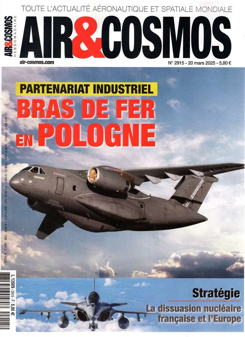 Le seul hebdomadaire en français spécialisé en aéronautique. Air & Cosmos vous livre l’analyse exhaustive de toute l’actualité internationale de l’industrie aéronautique, de l’espace et de la défense. Journalistes et experts analysent pour vous tous les événements internationaux (économie, innovations, entreprises, techniques, marchés, contrats …) et vous livrent les expériences et les témoignages vécus des hommes qui font avancer l’aéronautique.